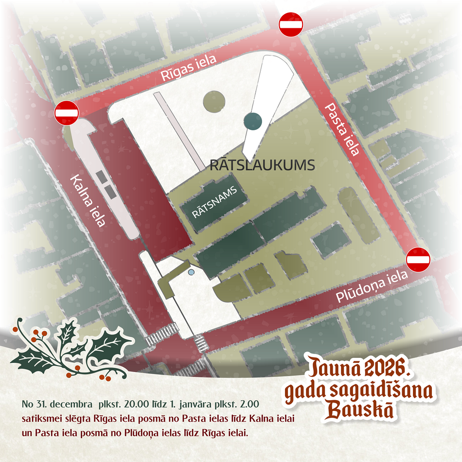 Svētku rīkotāji no Bauskas Kultūras centra uzsver, ka pasākuma norises dēļ no 31. decembra plkst. 20 līdz 1. janvāra plkst. 02 iedzīvotājiem jārēķinās ar satiksmes ierobežojumiem Bauskas rātslaukuma teritorijā. Satiksme nebūs iespējama Rīgas ielas posmā no Pasta ielas līdz Kalna ielai. Savukārt Pasta iela autobraucējiem būs slēgta posmā no Plūdoņa ielas līdz Rīgas ielai.