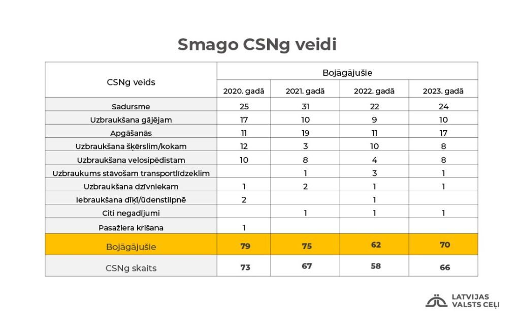 Atbilstoši Eiropas komisijas Transporta un mobilitātes direktorāta datiem, 2023. gadā smago CSNg skaits Eiropas Savienības (ES) valstīs pieaudzis Latvijā, Lietuvā, Portugālē un Zviedrijā. Mazāk, bet pieaudzis arī Igaunijā un Īrijā. Latvijā kopējais (uz visiem ceļiem) smago CSNg skaits saglabājas lielāks nekā vidēji ES.