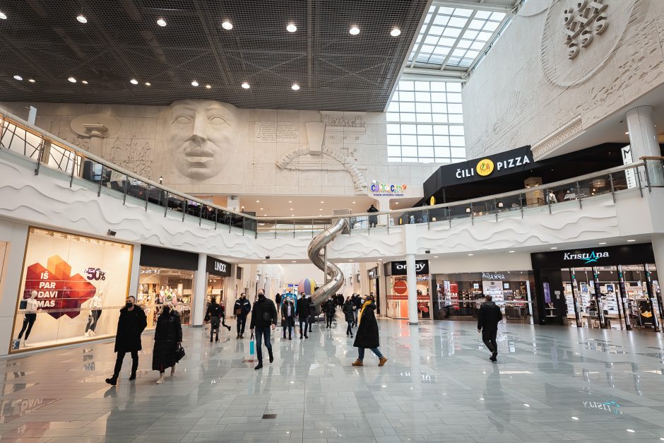 Mūsu pirmais mērķis Klaipēdā – salīdzinoši nelielais tirdzniecības centrs ”Grandus”. Uzliekam medicīniskās sejas maskas un dodamies uz ieeju. Pie tās iekšpusē nav neviena, kas pārbaudītu sertifikātu.