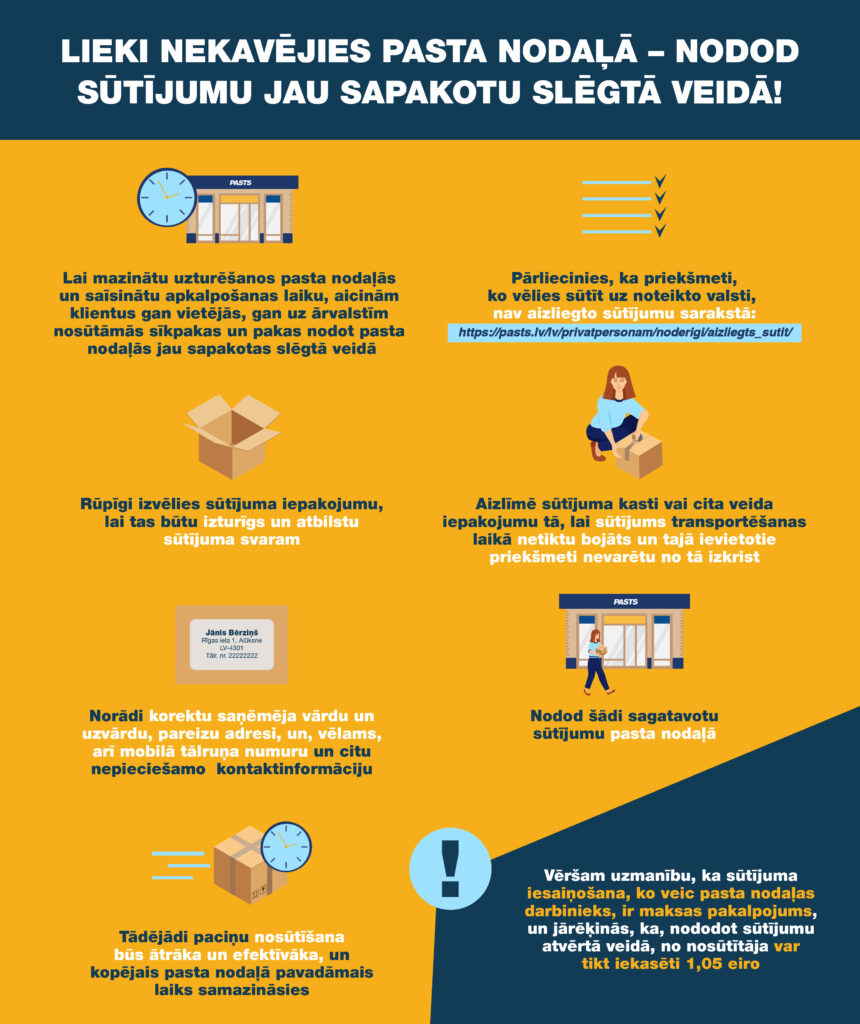 Pirms sūtījuma sagatavošanas un nodošanas pasta nodaļā “Latvijas Pasts” aicina klientus: