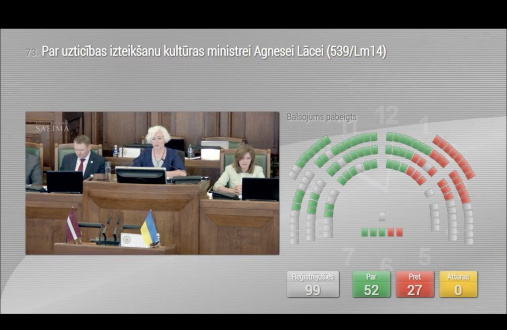 Par Lāci nobalsoja 52 deputāti, pret bija 27, bet neviens deputāts neatturējās.