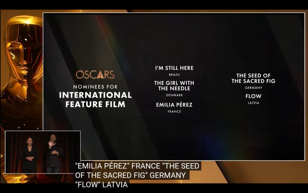 Režisora Ginta Zilbaloža pilnmetrāžas animācijas filma “Straume” jeb “Flow” nominēta divām ASV Kinoakadēmijas “Oskars” balvām, tiešsaistes pasākumā paziņoja ASV Kinoakadēmija.
