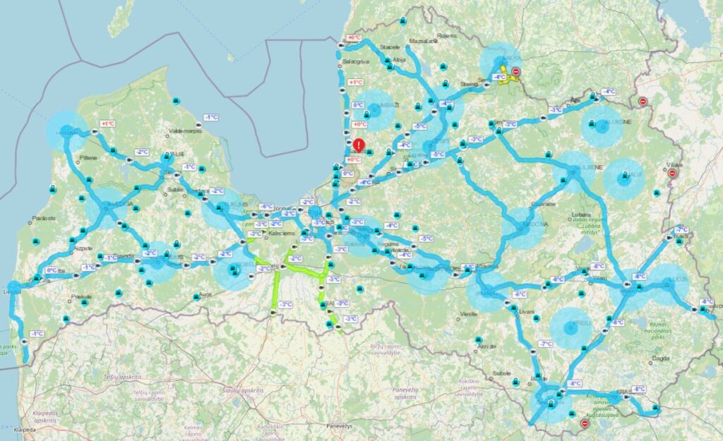 Otrdienas rītā apgrūtināti braukšanas apstākļi ir pa Tallinas, Vidzemes, Valmieras un Ventspils šosejām visā to garumā, pa Rīgas apvedceļu abpus Daugavai, pa Liepājas šoseju no Rīgas līdz Kaģiem un no Apšupes krustojuma līdz Liepājai, pa Liepājas- Rucavas ceļu, pa Bauskas šoseju no Rīgas līdz Dzimtmisai un pa Jelgavas šoseju no Rīgas līdz Olainei.