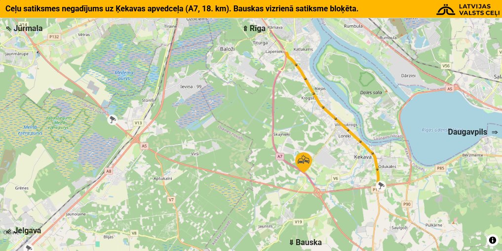 Negadījuma vietu ir iespējams apbraukt pa autoceļu Lapenieki-Ķekava-Ģūģi (P137).