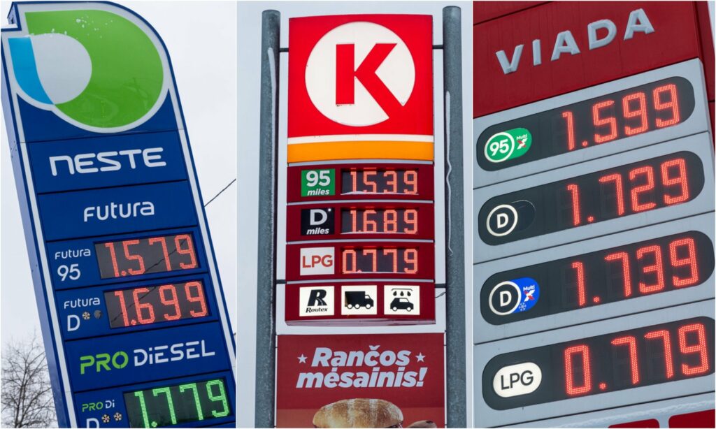 Viļņā “Circle K” degvielas uzpildes stacijā Savanorju prospektā piektdien 95.markas benzīns maksāja 1,559 eiro par litru, kas ir par 2,5% mazāk nekā pirms nedēļas, bet dīzeļdegvielas cena kritās par 1,7% – līdz 1,699 eiro par litru.