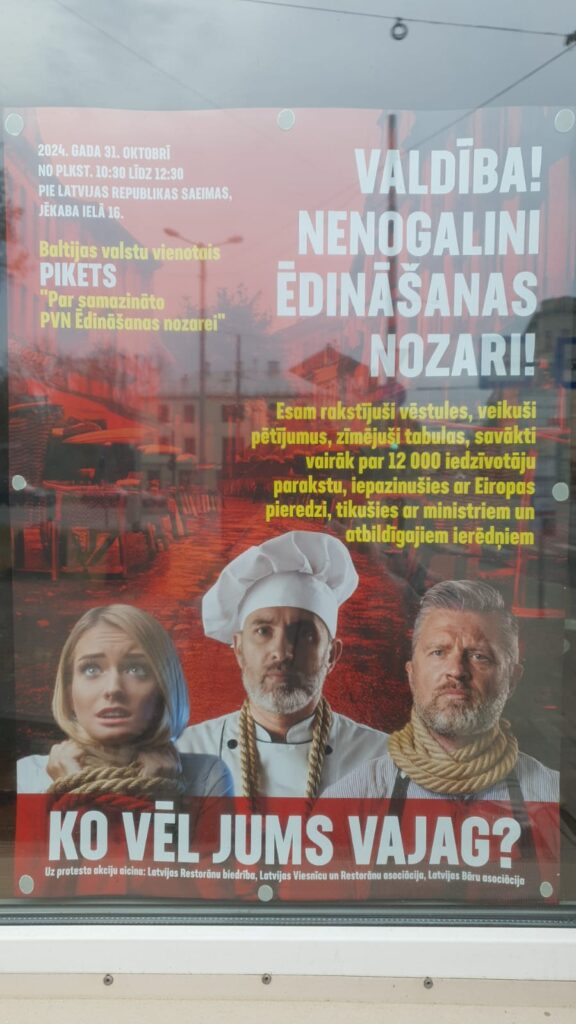 Latvijā nozares pārstāvji plāno protesta akciju pie Saeimas, Lietuvā protestētāji pulcēsies pie valdības nama, bet Igaunijā protesta akcija notiks visos restorānos.