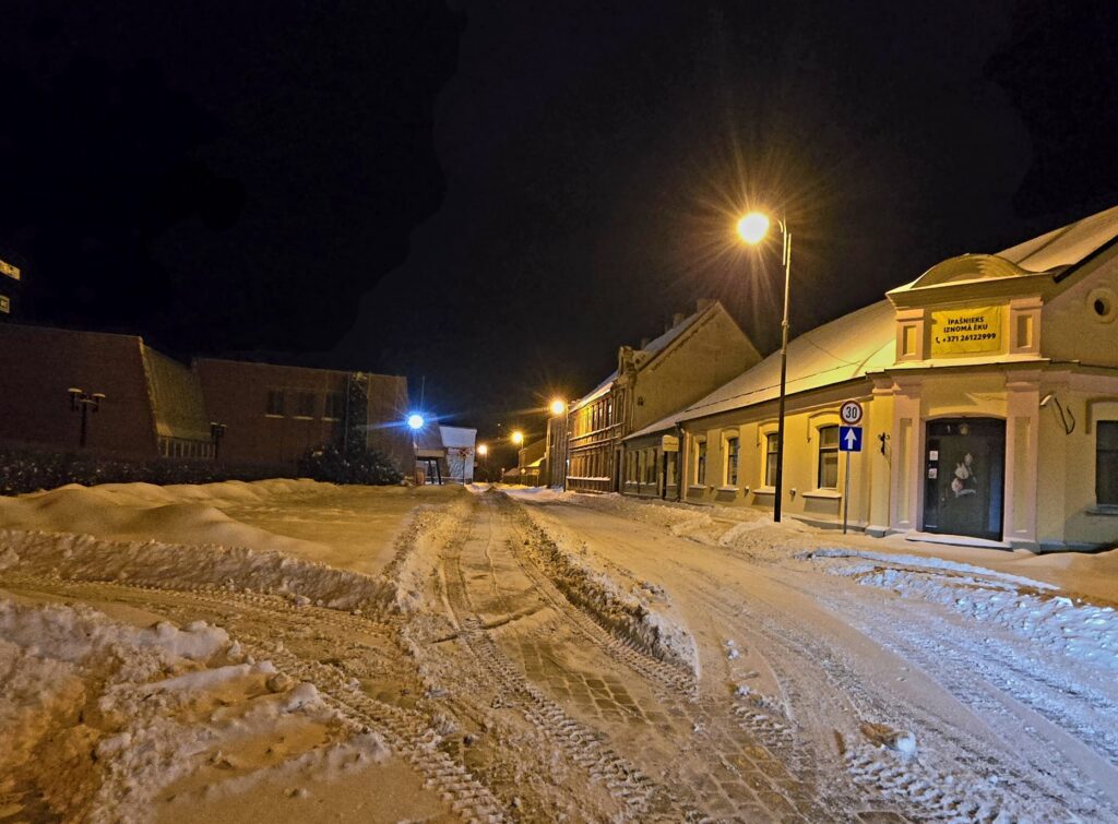 Trešdienas rītā galvenokārt Latvijas dienvidu daļā turpina snigt un nedaudz putināt. Debesis mākoņainas, Ziemeļvidzemē mākoņu ir mazāk.