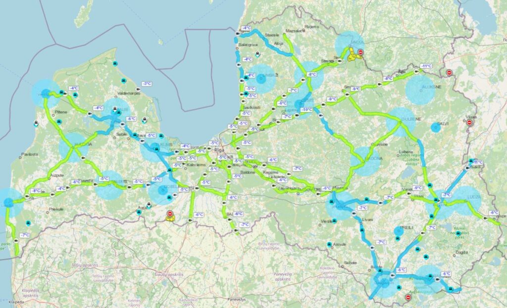 Sniegs un apledojums apgrūtina braukšanu pa valsts galvenajiem un reģionālajiem autoceļiem vietām Kurzemē, Vidzemē, Latgalē un Dobeles apkārtnē. Tomēr jāņem vērā, ka ceļa seguma stāvoklis var mainīties ļoti strauji.