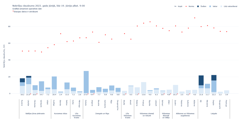 Šodien laika posmā no plkst.15 līdz 18 vietām, galvenokārt valsts dienvidu daļā, gaidāms pērkona negaiss ar stiprām lietusgāzēm un krasām vēja brāzmām līdz 15 metriem sekundē. Negaisa laikā iespējama arī krusa.
