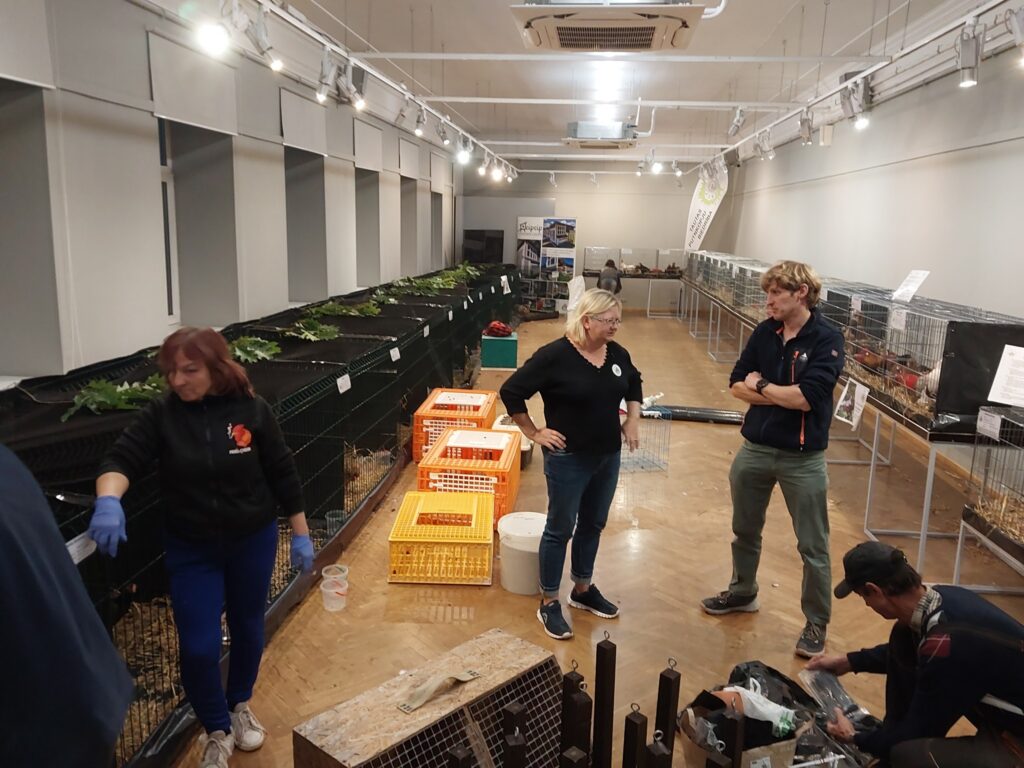 Foto: Tautas Putnkopju biedrības pārstāvji iekārto izstādi.