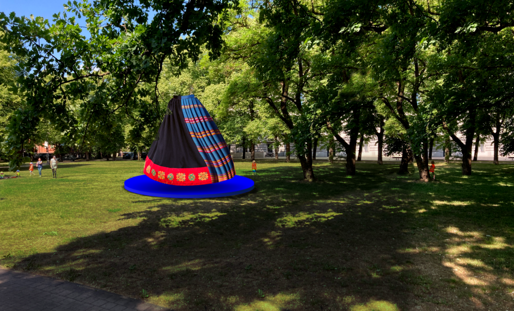 “Domājot par Dziesmu un Deju svētkiem, viena no spilgtākajām asociācijām ir tautastērpa svārku griešanās. Tā ir maģiska kustība, ko gribas sajust. Parasti šī griešanās pieredze ir gaužām īsa, tāpēc objekta ideja ir šo mirkli padarīt ilgāku un lielāku, pastiprināt un pievilkt tuvāk. Parasti cilvēks ir vai nu svārku griezējs vai vērotājs, toties tagad skatītājs ir divi vienā – pats var gan griezt, gan vērot,” stāsta Dace Izabella Grundšteina, “Magic B40” māksliniece.