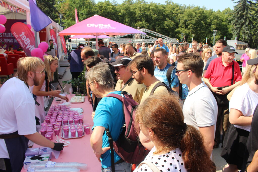 Zupu Esplanādē degustēja gan ģimenes ar bērniem, gan vecāka gadagājuma cilvēki. Brīžiem pie izdales vietas pat veidojās rinda un apmeklētājiem bija jāgaida, kad tiks pagatavota nākamā porcija, novēroja aģentūra “Leta”.