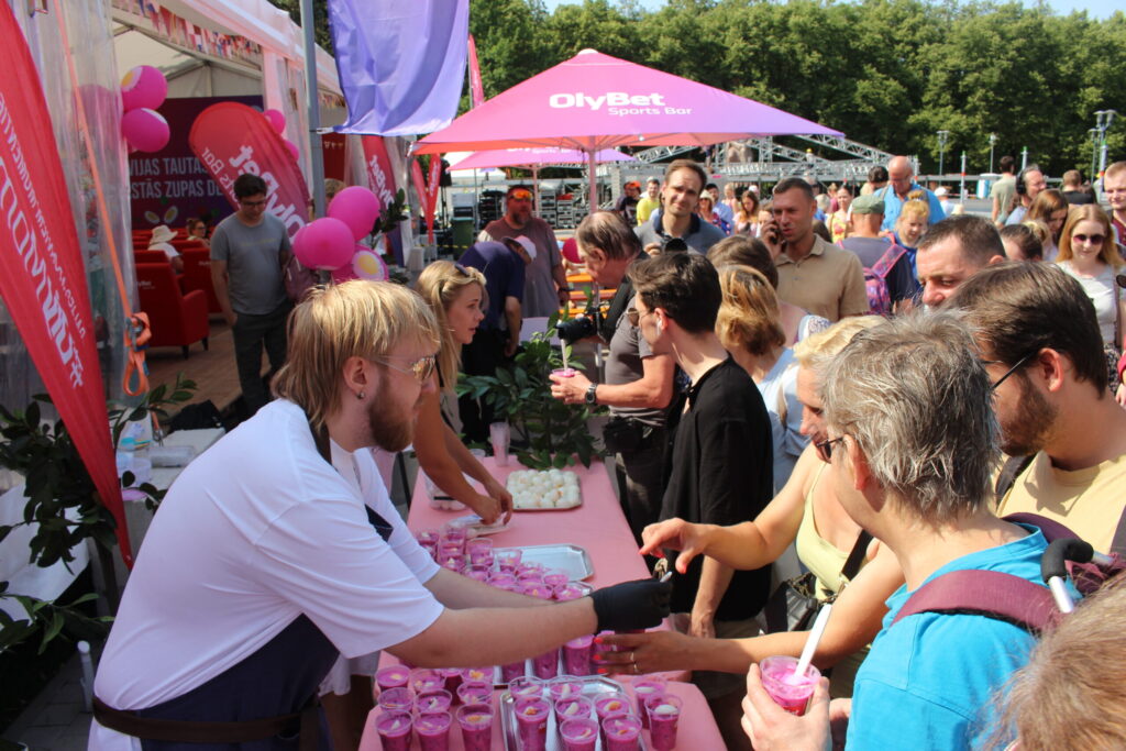 “Mēs ar prieku atsaucāmies šai idejai un nodrošinājām vietu mūsu fanu zonā Esplanādē. Šajā teltī ikdienā tiek pārraidītas 2024.gada Eiropas futbola čempionāta spēles. Prieks, ka fanu zona piedzīvoja ne tikai sporta fanu pieplūdumu, bet arī piesaistīja daudzus gardēžus, gan lielus, gan mazus, kuriem zupa ļoti garšoja! Prieks piedalīties tik sirsnīgā akcijā, kuras mērķis ir atlikt malā kašķus un vienkārši priecāties par gardu zupu un kopā būšanu,” sacīja Vīgante.