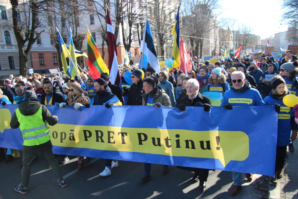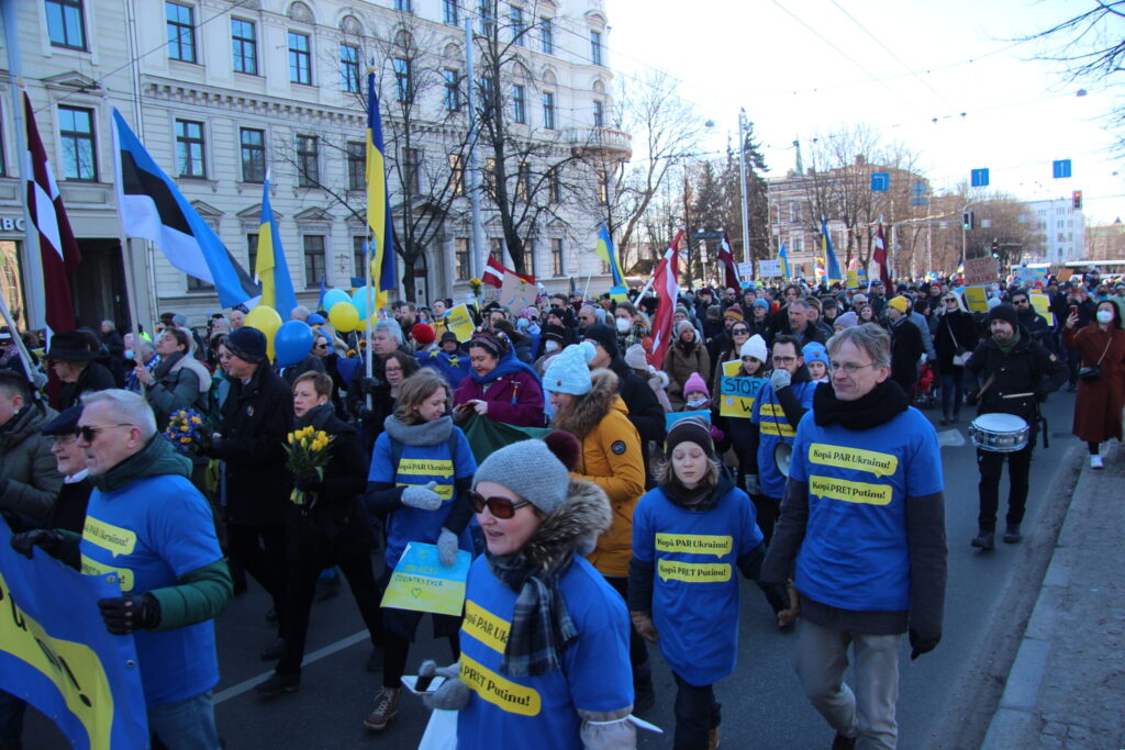 Lai nosodītu Krievijas prezidenta Vladimira Putina sākto karu Ukrainā un atbalstītu Ukrainas tautas cīņu par savas brīvības un demokrātijas saglabāšanu, sestdien Rīgā vairāki tūkstoši cilvēku pulcējās atbalsta gājienā no Brīvības pieminekļa līdz Ukrainas vēstniecībai, novēroja aģentūra LETA.