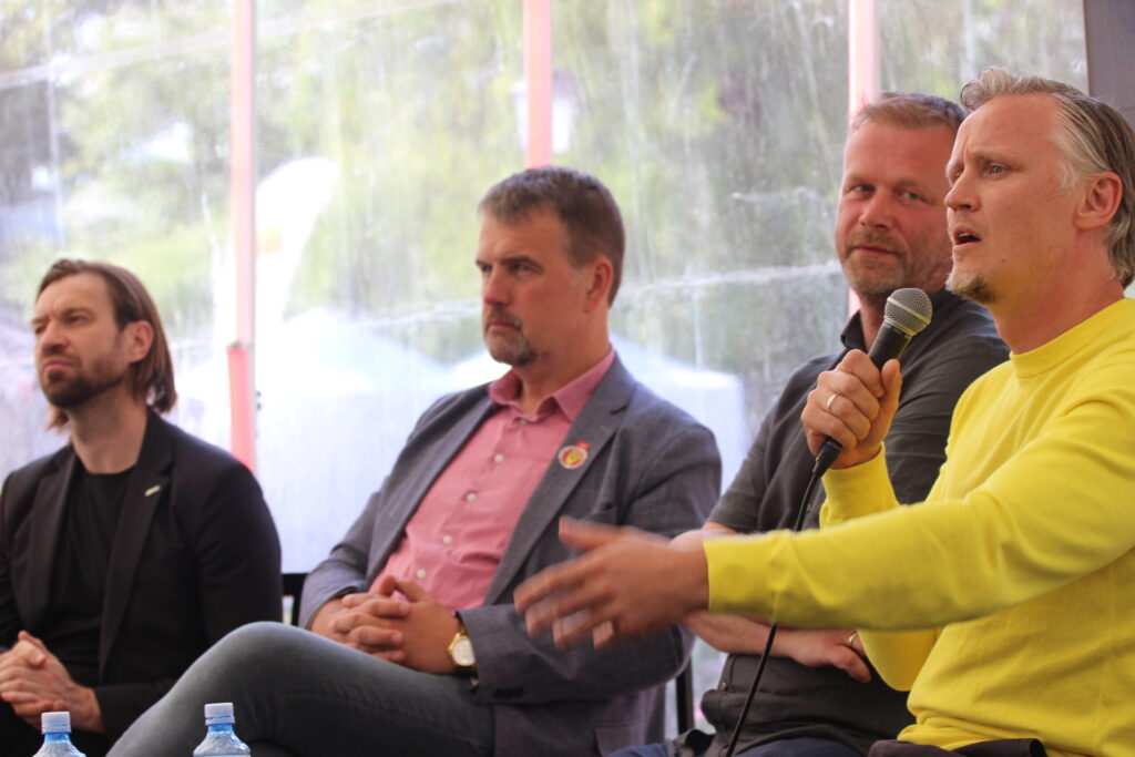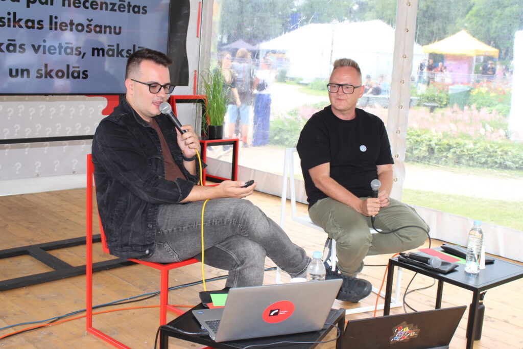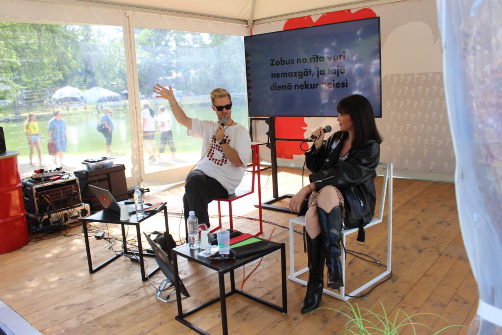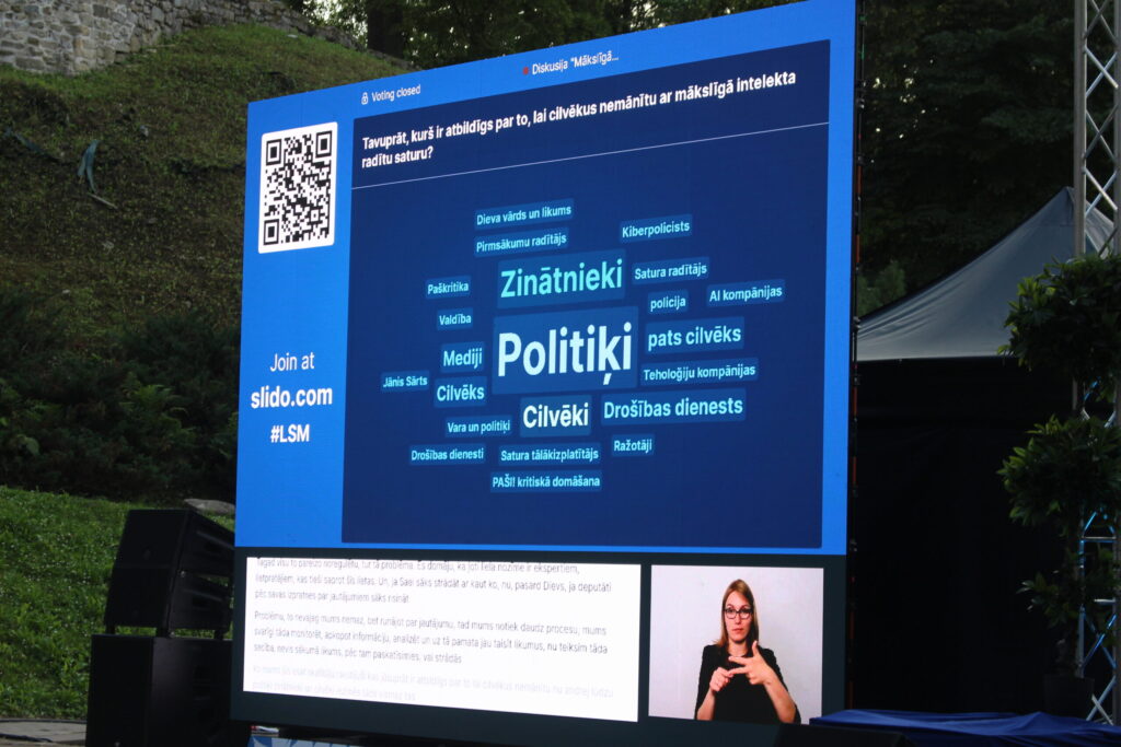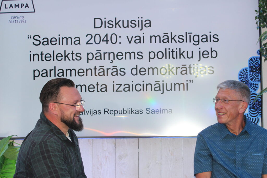 Uz skatuves “Apgaismo” līdzās citiem diskusiju tematiem notika sarunas par to, kā mākslīgais intelekts ietekmēs Latvijas un politiķu nākotni. Līdztekus norisinājās saruna par to, vai, sarunājoties latviešu valodā, pārāk bieži piesātinām valodu ar anglicismiem un vai tas rada draudus, kas noliek valodu uz “izmiršanas līnijas”.