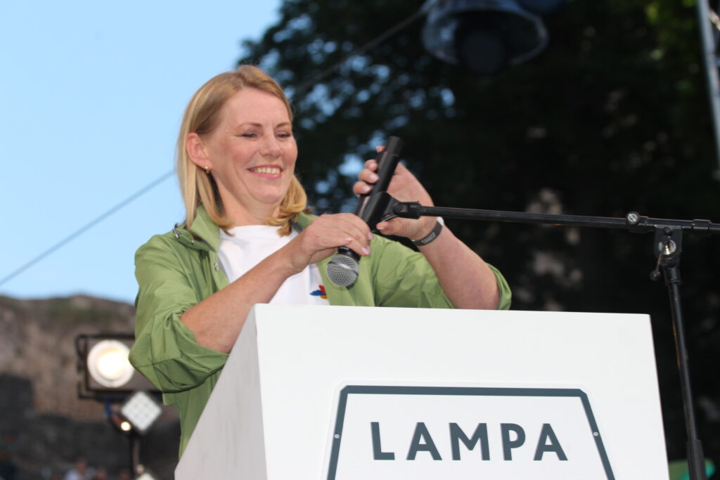 “Pirms deviņiem gadiem viss sākās ar sapni. Sapni un vēlmi kopā strādāt, lai Latvijā stiprinātu demokrātiju un mēs viens ar otru cieņpilnāk sarunātos. Tā dzima sarunu festivāls “Lampa”. Kopā esam gājuši garu un skaistu sarunu ceļu. Esam apliecinājuši, ka mums rūp, lai Latvijā varam dzīvot droši, jēdzīgi un laimīgi. Kopā esam radījuši vietu, kur ne tikai sarunāties par Latvijai, Eiropai un pasaulei būtisko, bet arī gūt spēku ikdienas darbam. Tāpēc jubilejas sarunu festivālu “Lampa” it īpaši redzam kā vietu, kur smelties un gūt spēku savu sapņu un mērķu īstenošanai, savai un Latvijas izaugsmei,” atklājot festivālu, pauda sarunu festivāla “Lampa” direktore Ieva Morica. Viņa kopā ar Cēsu novada domes priekšsēdētāju Jāni Rozenbergu, “Swedbank Latvija” valdes priekšsēdētāju Lauri Menci, British Council pārstāvniecības Latvijā vadītāju Zani Matesoviču un Vācijas vēstnieku Latvijā Kristianu Heltu (Christian Heldt) atklāja festivālu uz skatuves “Dots” Cēsu pils parkā.