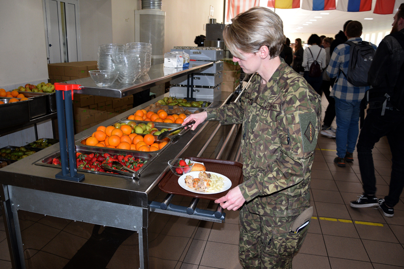 Tā kā Ādažu bāzē izvietotajā NATO paplašinātās klātbūtnes kaujas grupā dien daudzu sabiedroto valstu karavīri, tad arī ēdieni tiek pielāgoti atbilstoši viņu prasībām. Ir pieejami arī veģetārie ēdieni.