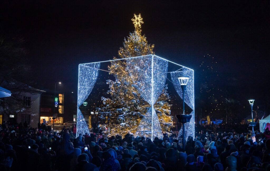 Piektdien, 8. decembrī, svinīgi Ziemassvētku egle iedegta Latvijas un Lietuvas pierobežas pilsētā Biržos.