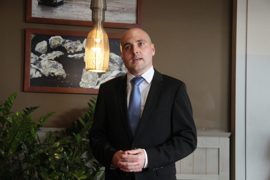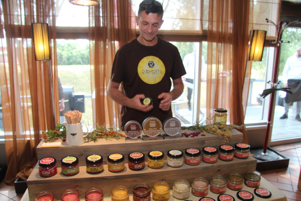 Bitenieks Otto Lodiņš no Bauskas novada Iecavas pagasta «Rāmritiem» ar sava inovatīvā produkta – medus suflē – piedāvājumu.  Foto – Ingrīda Punka.