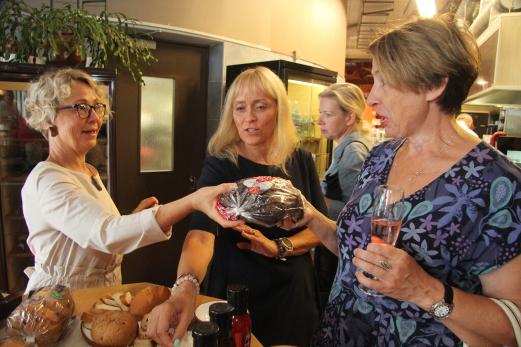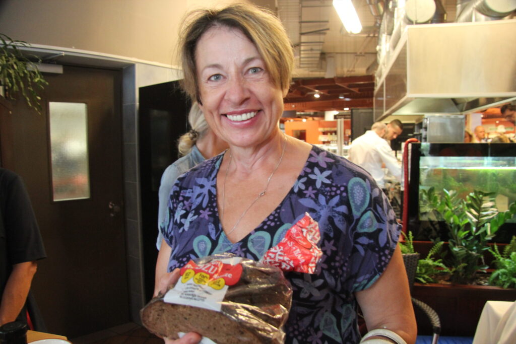 Maizes konkursā maizi pēc noteiktiem kritērijiem vērtēja kompetenta žūrija, kuras priekšsēdētāja bijusī baušķeniece Zane Timpare (attēlā no kreisās) – sertificēta uztura speciāliste. Foto – Ingrīda Punka.