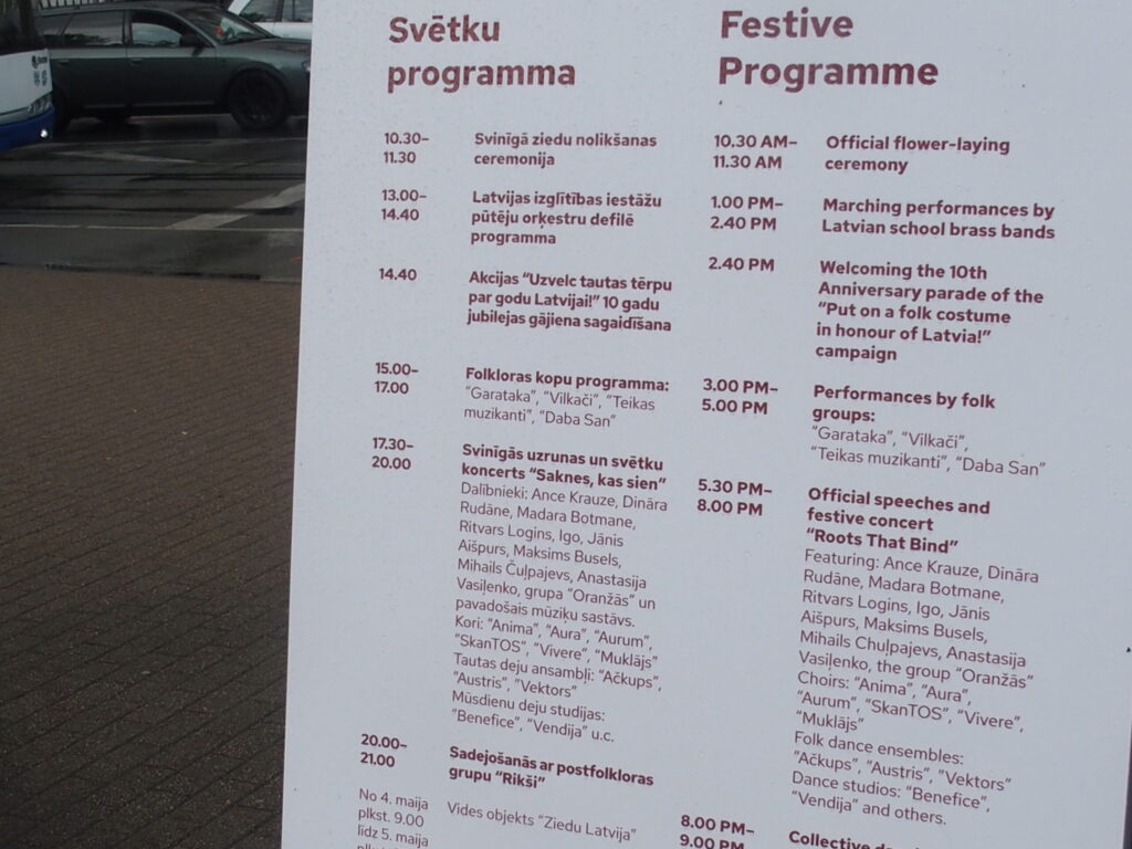 «Bauskas Dzīve» ielūkojās vairākos notikumos. Laukumā pie Brīvības pieminekļa visa diena bija piepildīta – tradicionālajā akcijā “”Ziedu Latvija”, kur līdzatnestie ziedi simboliski tika ievīti Latvijas kontūrā, pūtēju orķestru defilē, ziedu nolikšana, kā kulminācija – svētku koncerts “Saknes, kas sien” – ar svinīgām uzrunām, atmiņu stāstiem, populāru mākslinieku un deju kolektīvu uzstāšanos. Šī diena bija veltīta mūsu tautas vienotībai, kultūras mantojumam un nākotnes stiprināšanai.