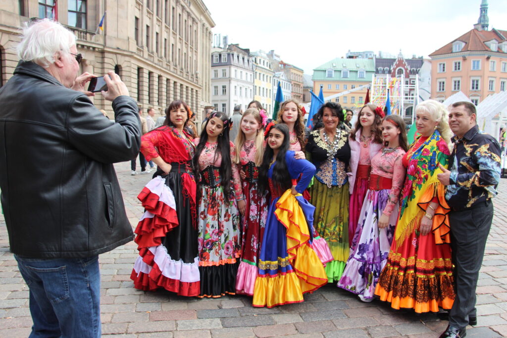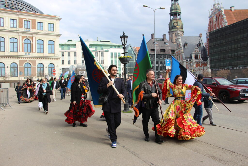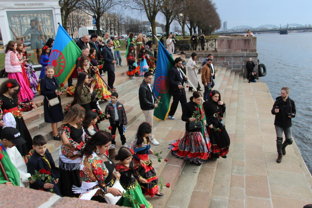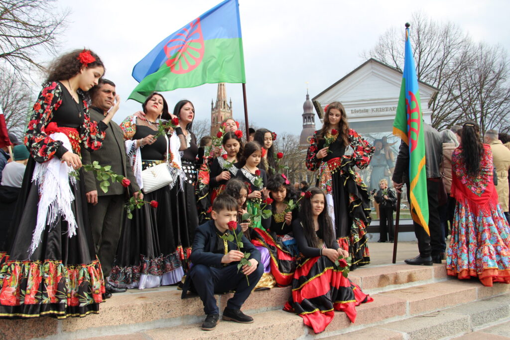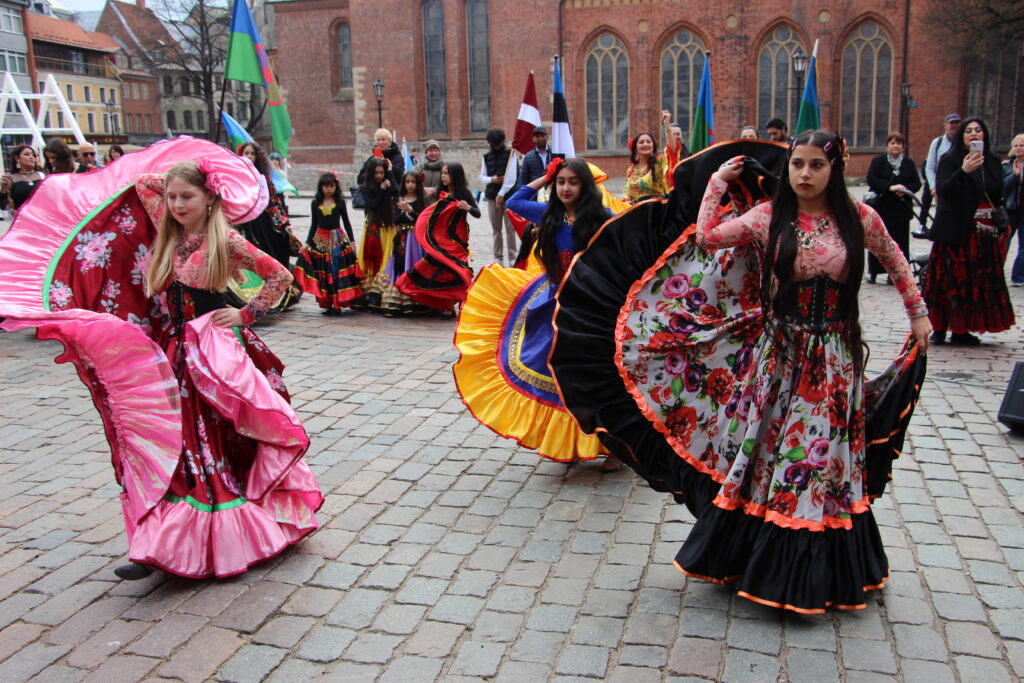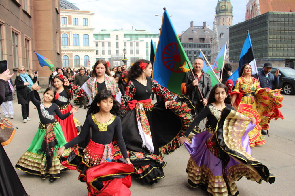 Rīgā aizvadīta Starptautiskā Romu diena. Krāšņi tērpi, ugunīgas dejas un melodijas pirmdien, 14. aprīlī, piepildīja Doma laukumu Rīgā. Lai svinētu Starptautisko Romu dienu, kopīgam gājienam bija sanākuši vairāki desmiti romu tautības pārstāvju. Viņi pulcējās ar mērķi mazināt stereotipus, ar ko saskaras ikdienā.