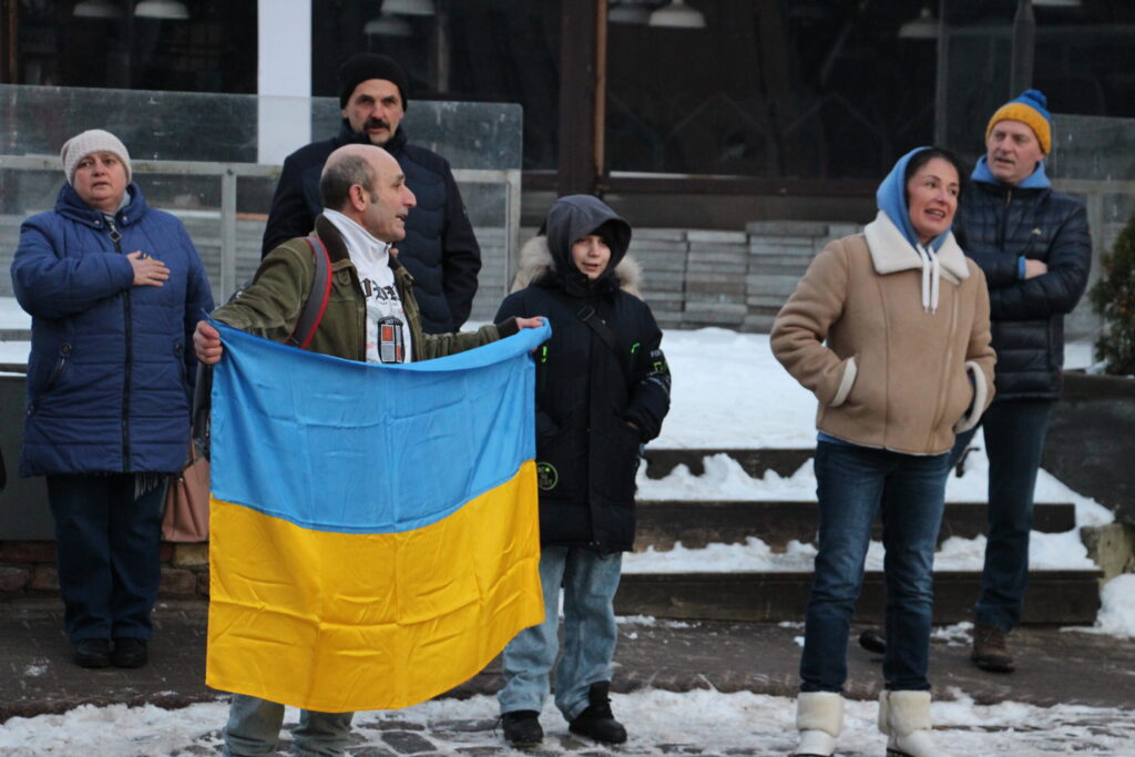 Tāpat iedzīvotājus lūdza pieminēt latviešu brīvprātīgos Vitāliju Smirnovu un Edgaru Platonovu, kuri krituši, aizstāvot Ukrainas brīvību un apzinoties, ka tādējādi aizstāv arī Latvijas un visas Eiropas brīvību.