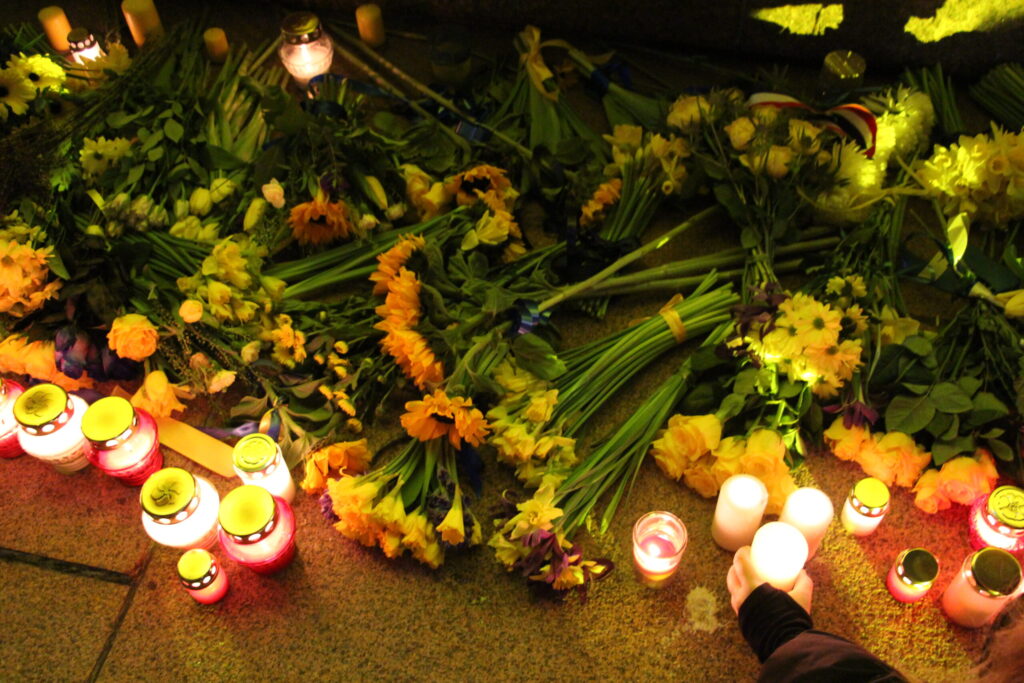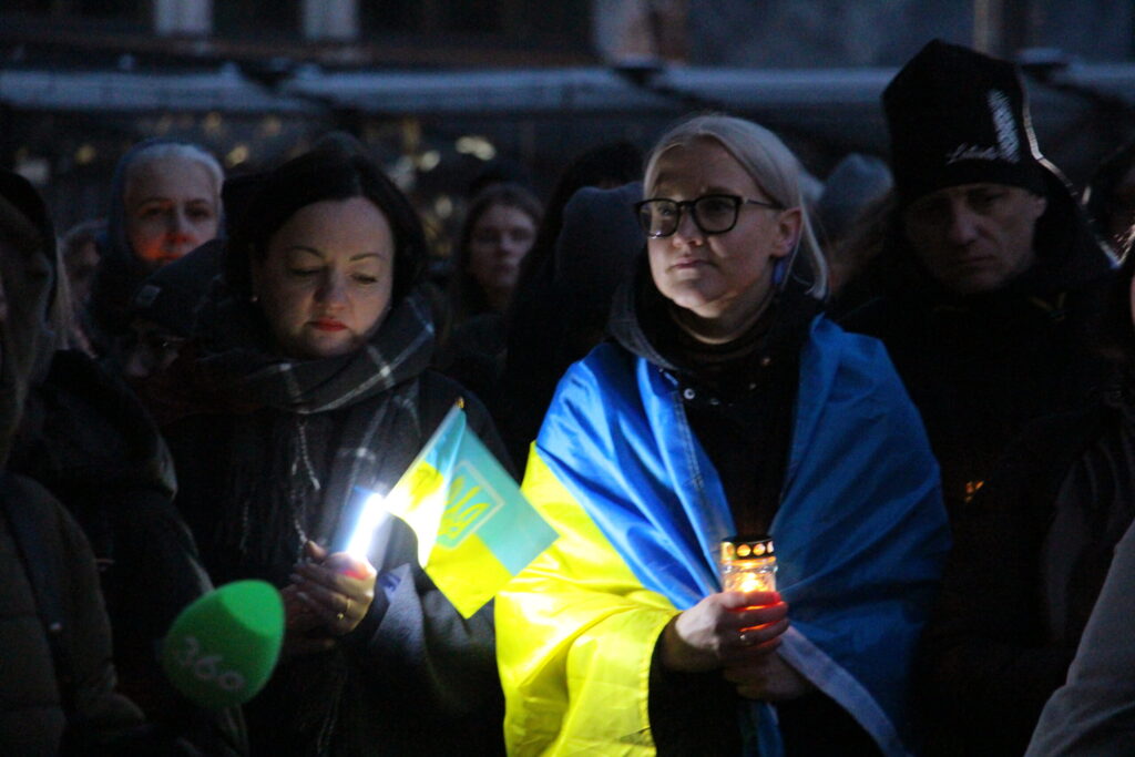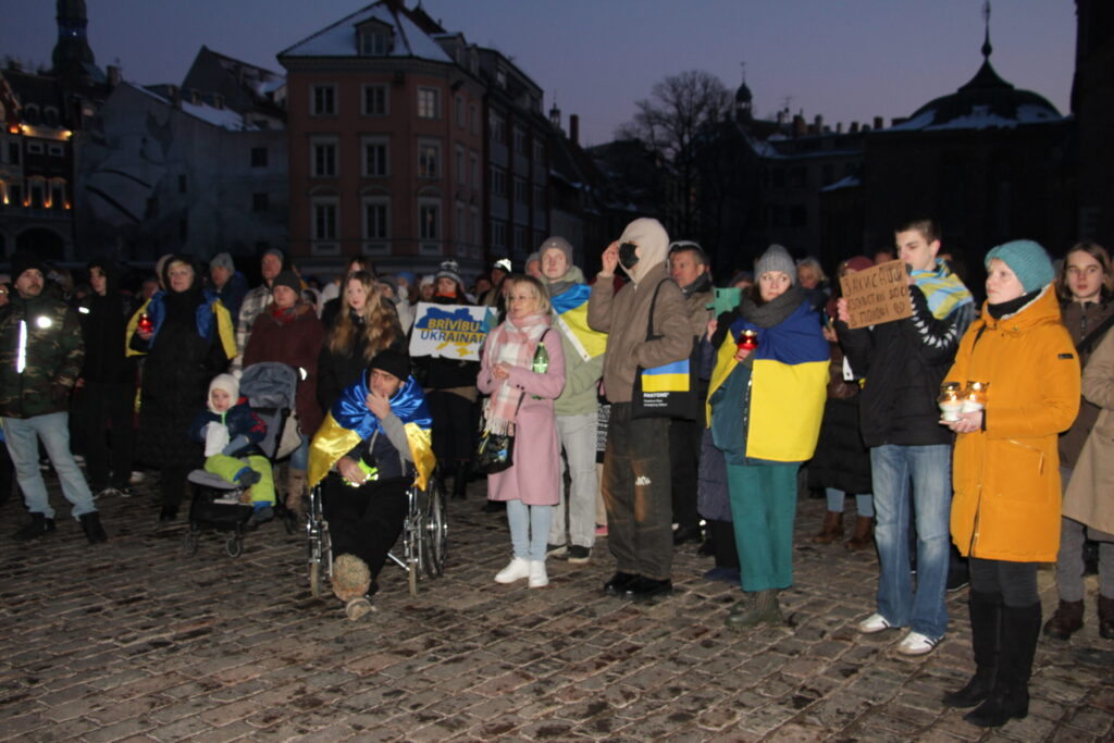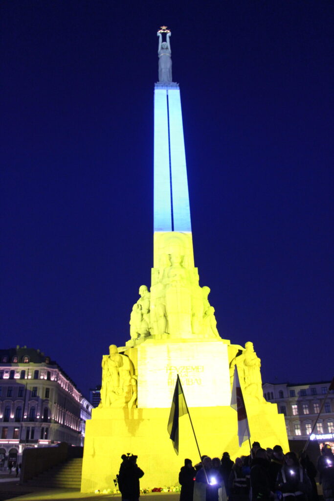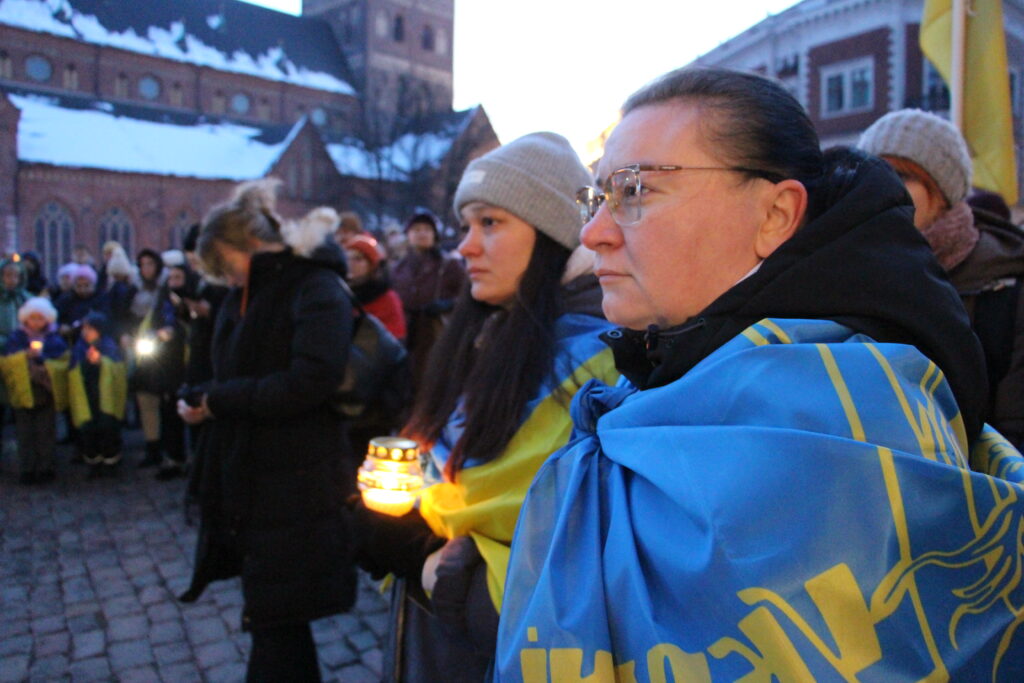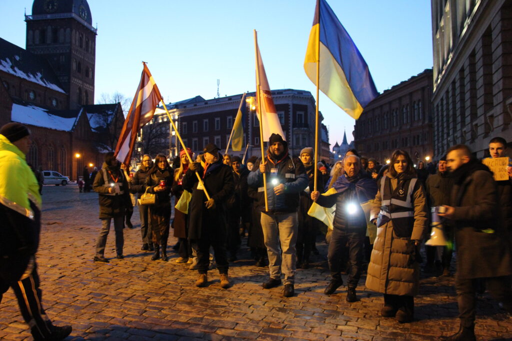 Vakarā Rīgā notika arī piemiņas un atbalsta akcija “Gaismas ceļš Ukrainai”, kurā biedrība “Tavi draugi” aicināja piedalīties ikvienu iedzīvotāju un līdzi ņemt gaismas avotus – viedtālruņus, kabatas lukturīšus, sveces, lāpas un citus.