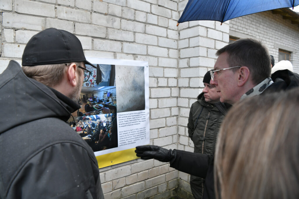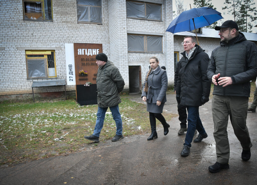 Kā informē M. Drēģeris, apmeklējot Černihivas apgabalu, Valsts prezidents tikās ar Černihivas apgabala Militārās administrācijas vadītāju Vjačeslavu Čausu (Vyacheslav Chaus). Valsts prezidents apmeklēja arī Jahidnes ciemu, kur kopīgi ar ciema iedzīvotājiem apskatīja Jahidnes skolas pagrabu, kur okupācijas karaspēks gandrīz mēnesi necilvēcīgos apstākļos gūstā turēja visus ciema iedzīvotājus. E. Rinkēvičs uzsvēra, ka jāturpina aktīvi strādāt, lai nodrošinātu visaptverošu Krievijas un tās pārstāvju atbildību par agresijas un kara noziegumiem.