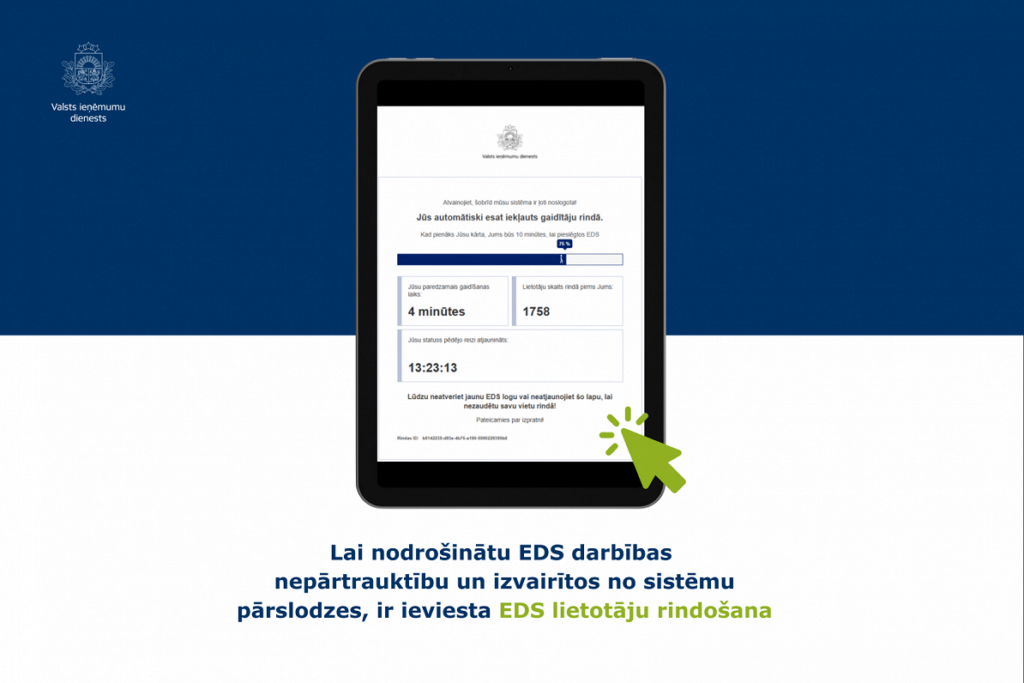 VID norāda, ka gada ienākumu deklarācijas iesniegšanas laikā arī šogad darbosies EDS lietotāju rindošana. Tā palīdz nodrošināt sistēmas stabilu darbību lielas noslodzes brīžos. Ja vienlaikus EDS būs pieslēdzies ļoti liels lietotāju skaits, cilvēki tiks novirzīti uz virtuālu uzgaidāmo telpu, kur būs redzama informācija par sagaidāmo pieslēgšanās laiku.