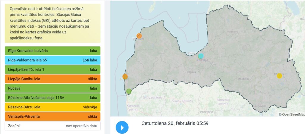 Gaisa temperatūra Latvijā no +1 līdz -19 grādiem; gaisa kvalitāte svārstās no labas līdz sliktai
