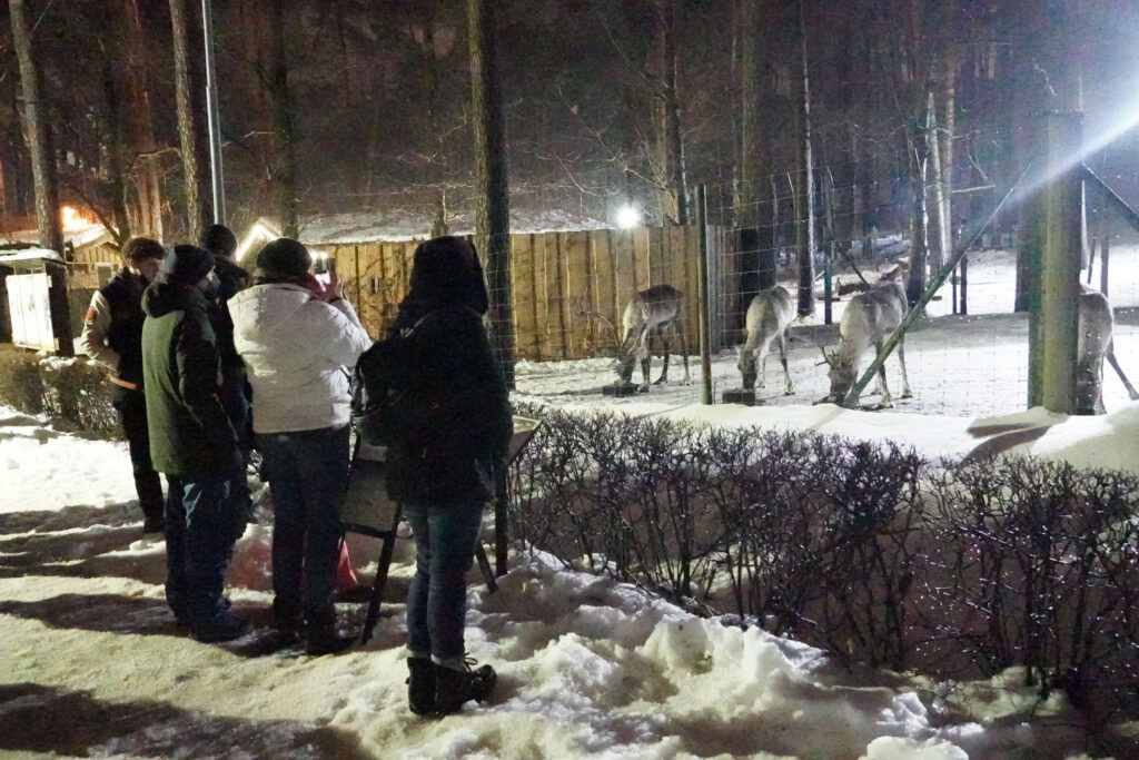 Ziemas naktīs apmeklētājiem sarūpēta iespēja vērot, kā mielojas dažādi zoodārza iemītnieki, vēsta M. Lielkalns. Viņš precizē, ka ap plkst. 16.15 granulēto barību ar savu izcili garo mēli filigrāni no trauka centīsies “samakšķerēt” žirafes Vakilija un Čaks. Tropu mājā mītošās lapgriežskudras vakarpusē tiks pacienātas ar vakariņām – aveņu lakstiem vai diedzētiem ozolu dzinumiem, kuru nokopšanai kukaiņi veltīs vairākas stundas. Savukārt daudz veiklāk mielošanās varētu notikt pie alpakām, kuras plkst. 18.15 vakariņās saņems burkānu porciju. Plkst. 18.30 gardu ozolzīļu porciju varēs kraukšķināt pekaru saime, bet 18.45 spēcinošu un īpaši sagatavotu ķērpju maltīti baudīs ziemeļbriežu ģimene.