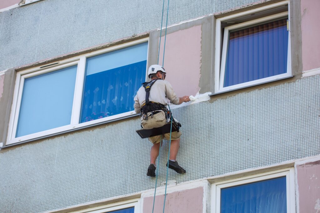 Šodien šuves tiek hermetizētas Pērnavas ielā 21, bet tuvākajās dienās darbi notiks Pērnavas ielā 19, Satiksmes ielā 41, Ganību ielā 58 un citās mājās. Hermetizāciju, ar speciālu līdzekli aiztaisot ēkas šuves, veic profesionāli alpīnisti, ievērojot drošības pasākumus.