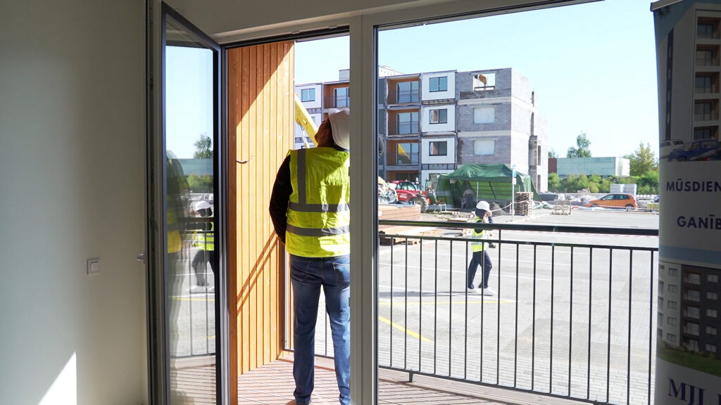Jānis Lagzdiņš: “Mēs nekad neesam šo ēku būvējuši kā tādu zemas īres maksas māju, kur ir ļoti budžeta variants, mēs esam pieturējušies ļoti tuvu tam, ko mēs izmantojam citos mūsu projektos. Ja mēs skatāmies ārējo apdari, fasādes apdari, tad tā ir tieši tāda pati kā mūsu komercprojektos, kur esam starp biznesa klasi un premium klasi. Ja runājam par interjera apdari, tad arī tieši tas pats.”