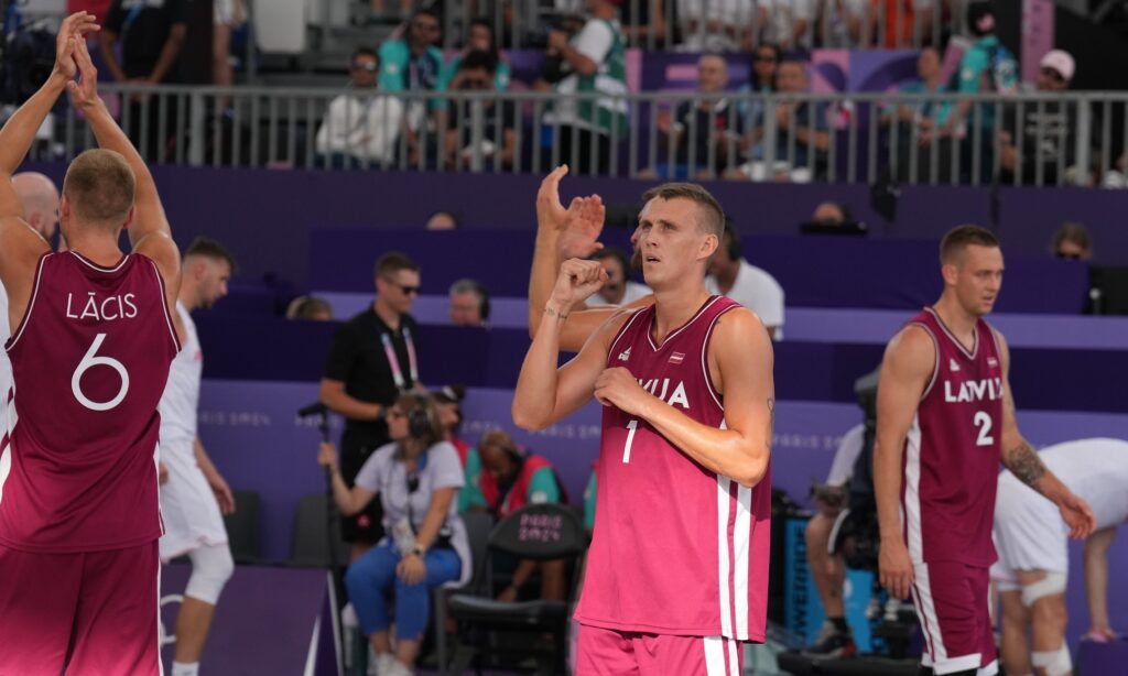 Latvijas 3×3 basketbolisti Nauris Miezis, Kārlis Lasmanis, Francis Lācis un Zigmārs Raimo pirmdien cieta zaudējumu Parīzes olimpisko spēļu sacensību cīņā par bronzas medaļām.