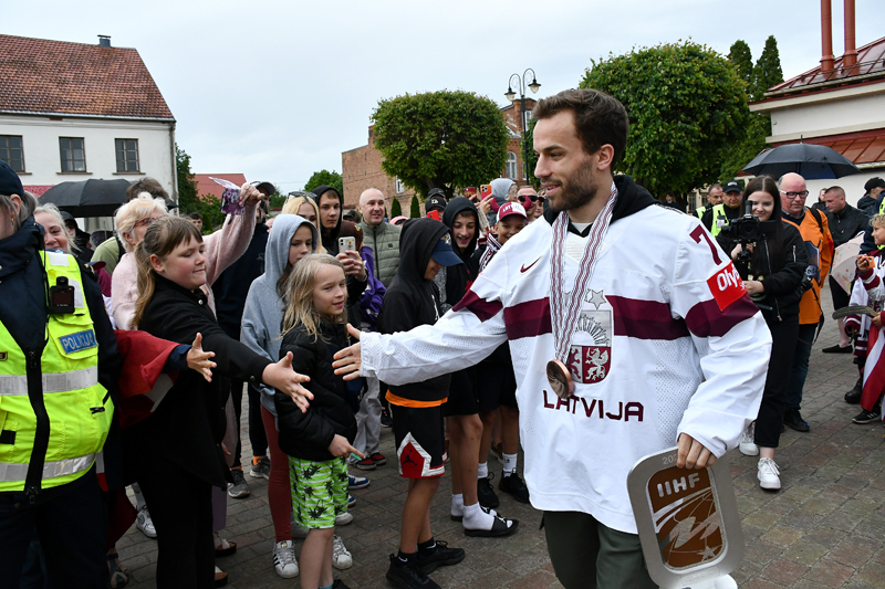 Hokeja izlases spēlētājs novadnieks Jānis Jaks Bauskā 2023. gada 1. jūnijā. Foto: Ivars Bogdanovs, “Bauskas Dzīves” arhīvs.
