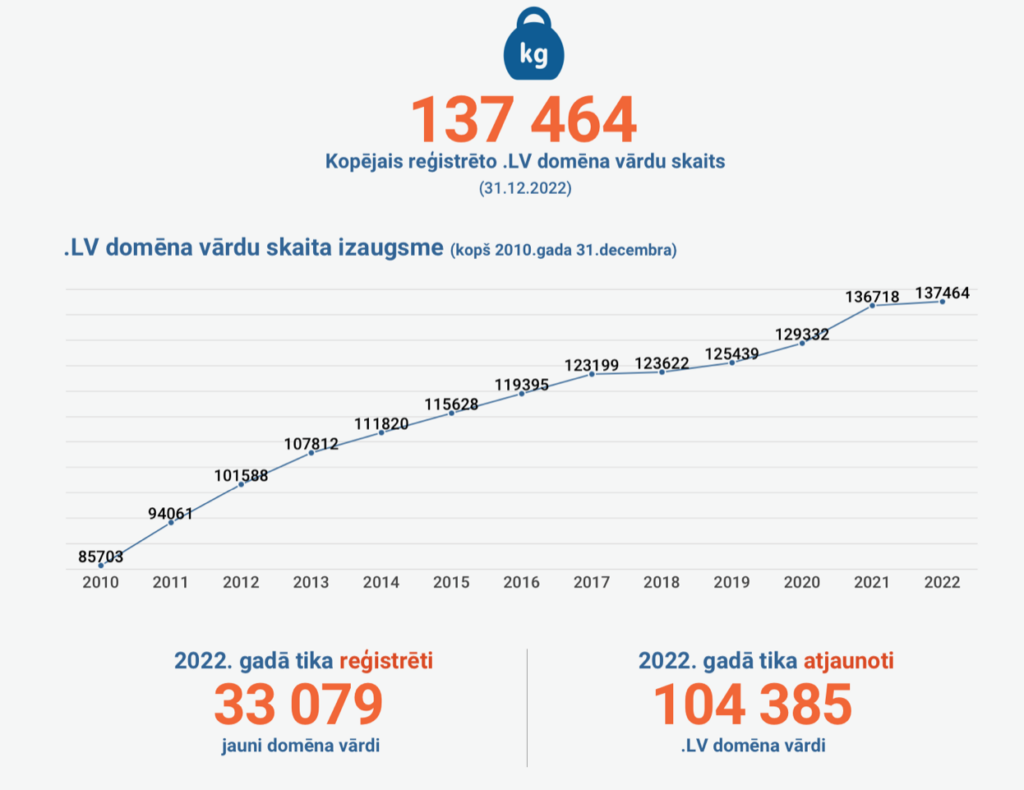 Plašāk ar “.lv” reģistra NIC sagatavoto statistikas pārskatu par “.lv” domēnu un tā lietotājiem 2022. gadā varat iepazīties https://www.nic.lv/lv/skaitli-un-fakti-par-lv-domenu-2022-gada