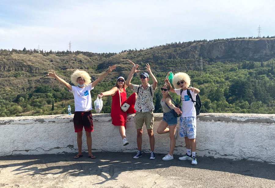 Kristers Kalējs (pirmais no kreisās) ar Latvijas grupu Gruzijā «Erasmus+» projektā. Foto no personiskā arhīva.