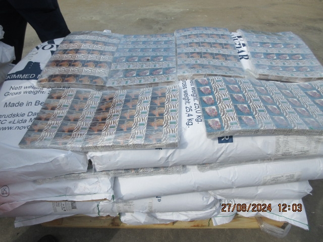 Foto: Kravā starp maisiem ar sauso pienu paslēptas kontrabandas cigaretes. Foto: VID