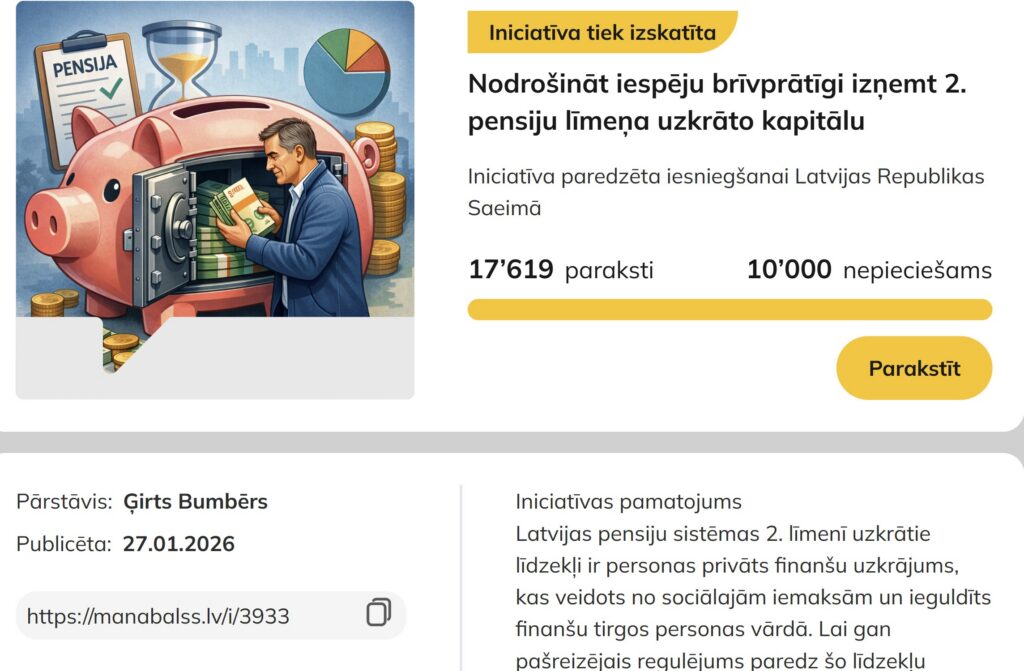 Šodien viņam jādodas aizstāvēt uz Saeimu iesniegto inicitīvu. Ģ. Bumbērs atzīmēja, ka par iniciatīvu šobrīd portālā manabalss.lv ir parakstījušies vairāk nekā 17 tūkstoši iedzīvotāju. “Man tika atsūtīts saraksts ar personām, kuri būs šajā komisijā, es varu pateikt, ka tā būs kā “auksta duša”. Es biju iedomājies, ka būs pa kādam pārstāvim no Labklājības ministrijas, Finanšu ministrijas, iespējams, Latvijas bankas, bet te pieteikti deviņi eksperti. Piedalīsies Labklājības ministrijas parlamentārais sekretārs, vairāku departamentu direktori, tāpat četri cilvēki no Finanšu ministrijas, ieskaitot ministrijas parlamentāro sekretāru, trīs eksperti no Latvijas bankas. Tāpat klāt būs personas, kuras pašas pieteikušās, piemēram, no Latvijas Darba devēju konfederācijas. Iespējams, lietos terminus, kurus nesapratīšu, vārdsakot “ēdīs mani bez sāls nost”, bet man ir sava pārliecība – iesākts ir un atkāpties nevar. Plašo ekspertu loks man pat ir pagodinājums, tas tikai apliecina, ka ļoti negrib, lai šo naudu izņem. 10 miljardi eiro ir liela summa. Nebūs viegli, bet būs interesanti un jāiet līdz galam. Sēdē mēģināšu uzlikt statīvu uz galda un ierakstīt savu uzstāšanos, bet plašāk par pieredzēto dalīšos tiešraidē svētdien, 29. martā, savā sociālā tīkla “TikTok” kanālā,” tā Ģ. Bumbērs.