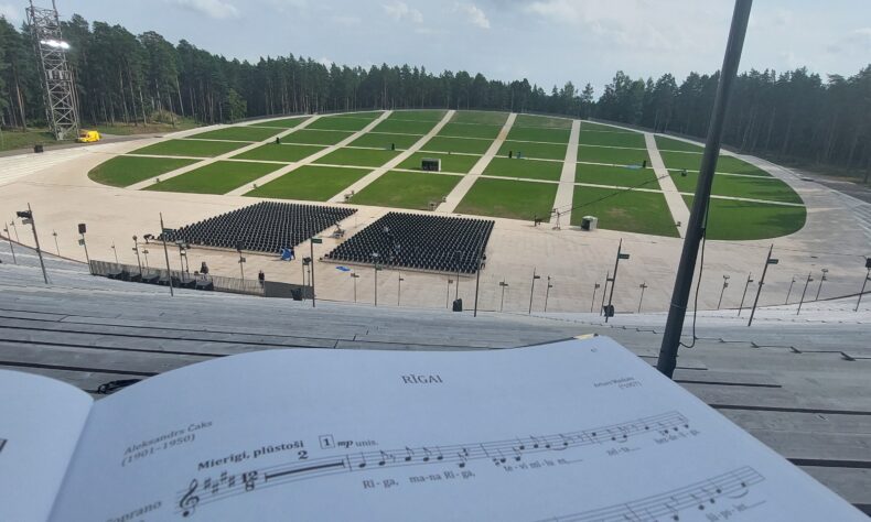 Foto – Dziesmu un deju svētku estrāde Mežaparkā Rīgā; publicitātes attēls.