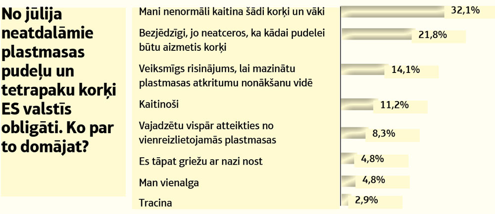 ES valstīs no 3. jūlija plastmasas pudelēm un tetrapakām neatdalāmi korķīši ir obligāti.