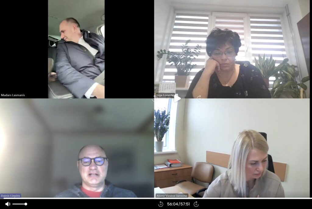 Šodien sociālajos tīklos nonācis video no komisijas 13.februāra sēdes, kurā novada domes priekšsēdētājs Lasmanis piedalās attālināti un redzams, sēžot automašīnā vadītāja sēdeklī. Sēdei tuvojoties noslēgumam, noprotams, ka automašīnas aizmugurējā sēdeklī iesēžas vēl kāds un starp priekšējiem sēdekļiem parādās zeķbiksēs tērpta sievietes pēda, kas kadrā vērojama ilgstošu laiku. Lasmanis pieskaras kājai un viņa roka “pievēršas” personai automašīnas aizmugurējā sēdeklī.
