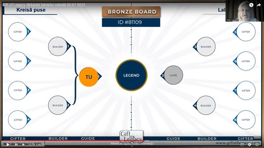 Pēc vēl viena šāda cikla atkārtošanās tiek saņemta iespēja kļūt par to personu, kas pati saņem “dāvinājumus” (attēlā Nr.2 – Legend). Kļūstot par saņēmēju un veicot jau lielākas iemaksas nākamajā līmenī, tiek piedāvāts pakāpeniski saņemt “dāvanās” līdz pat 42 700 dolāriem. Tādējādi sākotnēji jaunam dalībniekam kā “dāvinātājam” jāsamaksā 100 dolāri, otrajā līmenī 400, trešajā līmenī 1600 un ceturtajā jau 5 000 dolāru, par to solot pasakainu peļņu 42 700 dolāru apmērā. Vienlaikus videomateriālā nepārtraukti tiek mudināts veidot savu “komandu”, proti, piesaistīt jaunus “dāvinātājus”, kas palīdzēs ātrāk sasniegt mērķi. PTAC brīdina, ka šī ir klasiska piramīdveida shēma un aicina patērētājus šādā un līdzīgās shēmās neiesaistīties.