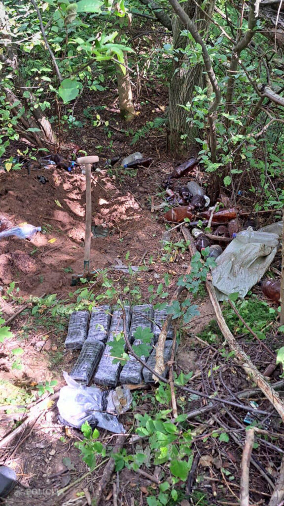 Turpinot darbu iepriekš sāktajā kriminālprocesā, dienu vēlāk likumsargi Rēzeknes novada Ozolaines pagasta meža masīvā konstatēja šī vīrieša speciāli izveidotu slēpni zemē. Tajā bija ierakti deviņi maisi, kuros atradās 83 iepakojumi ar zaļganbrūnas krāsas, nezināmas augu valsts izcelsmes – hašišam līdzīgu vielu. Kopējais iepakojumu svars ir aptuveni 100 kilogrami. Pašlaik ir nozīmētas ekspertīzes, lai noteiktu precīzu izņemto vielu sastāvu, paskaidro Jūlija Jurāne.