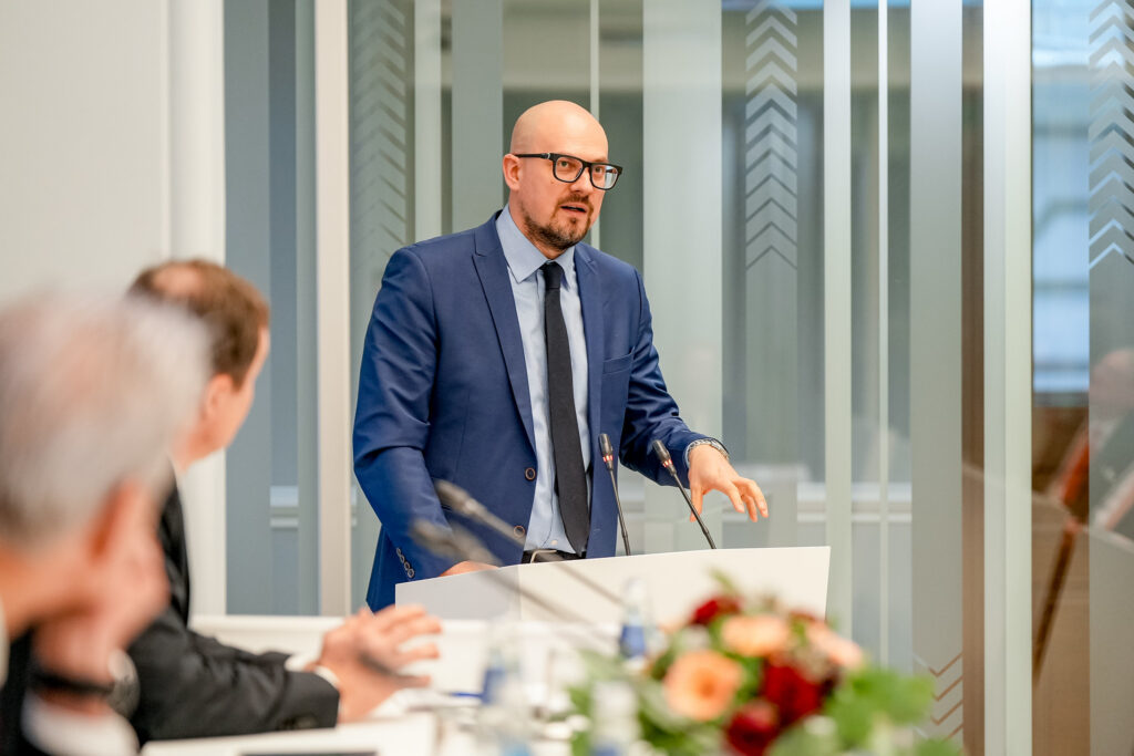 Vitālijs Rakstiņš konferencē “1991. gada janvāra barikādes kā tautas pretestības totalitārajam režīmam izpausme un mācības mūsdienām”. Foto: Laura Zaula/ Saeima