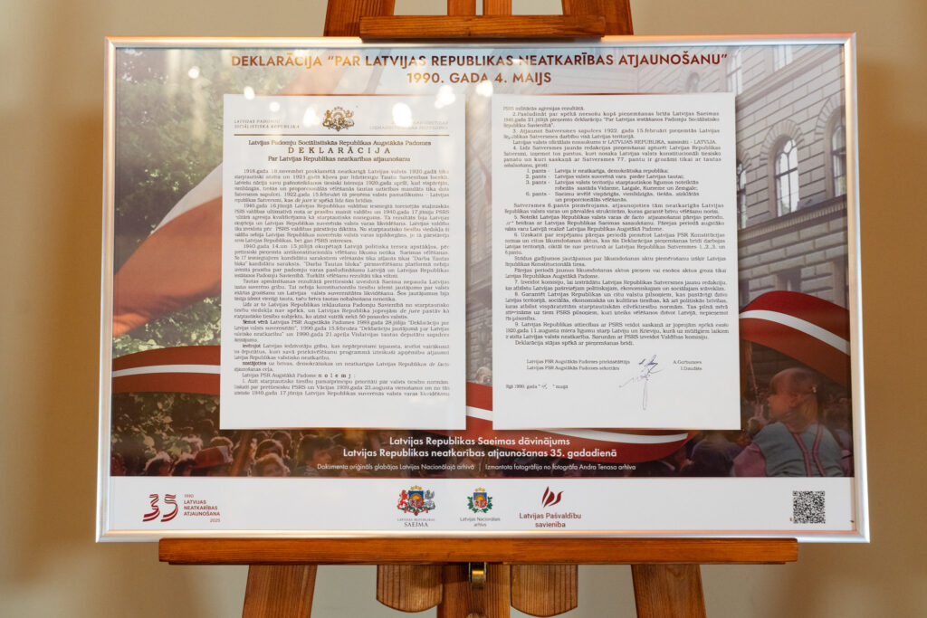 Deklarācijas noformējumā ir iekļauts arī kvadrātkods, kuru skenējot, skolu jaunieši neatkarības atjaunošanai veltītā sadaļā Saeimas tīmekļvietnē https://ej.uz/35gadiLatvijaNeatkariba var iepazīt laikabiedru atmiņas par tā laika vēsturiskajiem notikumiem, ceļu, kādu esam nogājuši no okupācijas 1940.gada 17.jūnijā līdz pilnīgai neatkarības atjaunošanai un noskatīties videociklu “Izšķirošais lēmums: Kā tapa Neatkarības atjaunošanas deklarācija”.