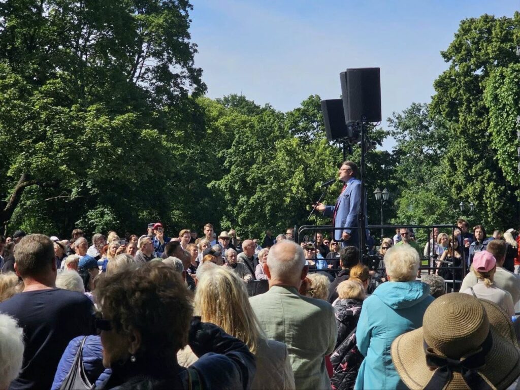Ap simts cilvēku sestdienas pēcpusdienā bija pulcējušies Brīvības pieminekļa laukumā partijas “Latvija pirmajā vietā” (LPV) rīkotajā sapulcē par pašvaldību vēlēšanu rezultātu neatzīšanu.