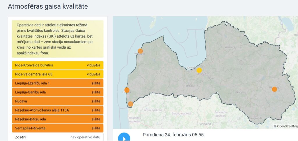 Paaugstināta PM2.5 piesārņojuma dēļ gaisa kvalitāte ir slikta. Paaugstināta riska iedzīvotāju grupām jāievēro piesardzība.