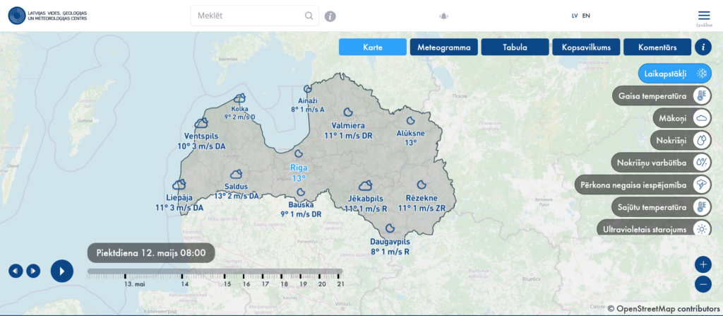 Jūras brīzes dēļ vēsāks laiks saglabāsies piekrastē, kur maksimālā gaisa temperatūra vietām nepārsniegs +17 grādus.
